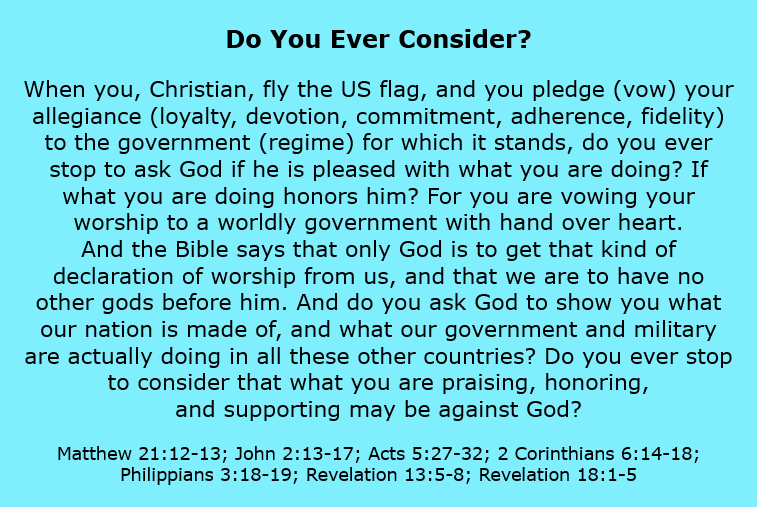 This was written to Christians living here in America, but you can apply it wherever it applies if you are living in another country.