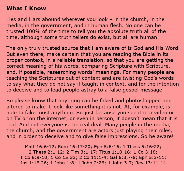 What I Know Image October 5, 2024 Sue Love Christian memeBible, Christianity, deception, Encouragement, Faith, God, gospel, Inspirational, Jesus Christ, Salvation Share this: Click to share on X (Opens in new window) X Click to share on Facebook (Opens in new window) Facebook Click to print (Opens in new window) Print Click to email a link to a friend (Opens in new window) Email Like Loading... Related