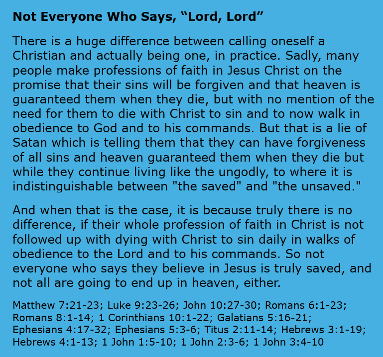 Not Everyone Who Says, “Lord, Lord” Image November 8, 2024 Sue Love Christian memeBible, Christian meme, Christianity, Encouragement, Faith, God, gospel, Inspirational, Jesus Christ, Salvation Share this: Click to share on X (Opens in new window) X Click to share on Facebook (Opens in new window) Facebook Click to print (Opens in new window) Print Click to email a link to a friend (Opens in new window) Email Like Loading... Related