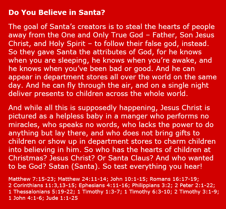 Do You Believe in Santa? Image December 20, 2024 Sue Love Christian memeBible, Christian meme, Christianity, Encouragement, Faith, God, Inspirational, Jesus Christ, Santa Claus Share this: Click to share on X (Opens in new window) X Click to share on Facebook (Opens in new window) Facebook Click to print (Opens in new window) Print Click to email a link to a friend (Opens in new window) Email Like Loading... Related