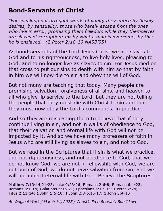 Bond-Servants of Christ Image March 14, 2025 Sue Love 2 Peter, Bible Studies, Christian Devotional, Christian memeBible, Christian meme, Christianity, Encouragement, Faith, God, gospel, Inspirational, Jesus Christ, Salvation Share this: Click to share on X (Opens in new window) X Click to share on Facebook (Opens in new window) Facebook Click to print (Opens in new window) Print Click to email a link to a friend (Opens in new window) Email Like Loading... Related